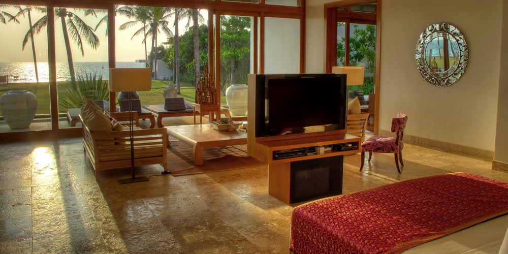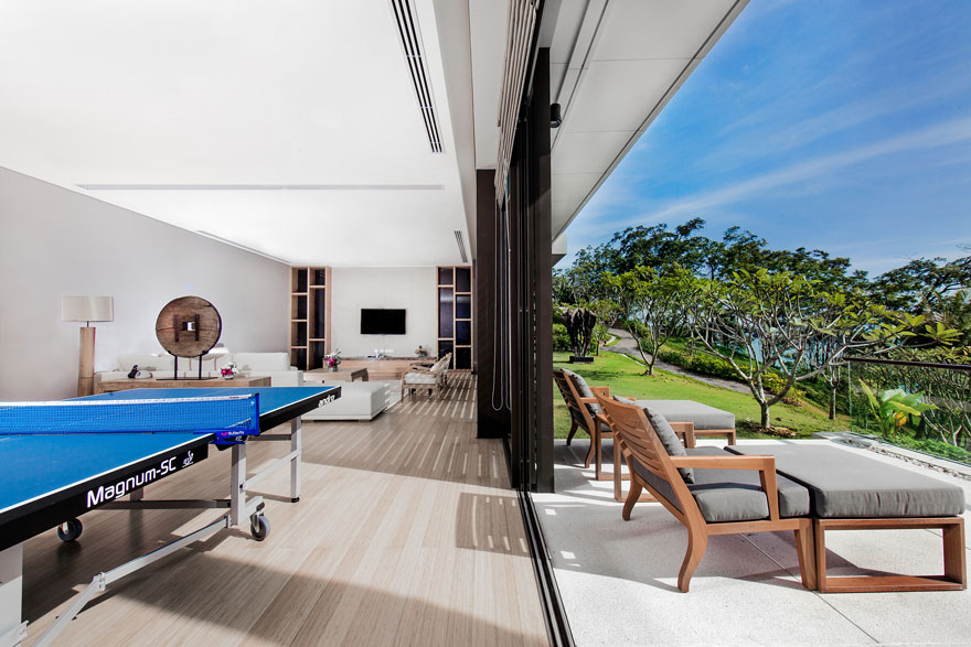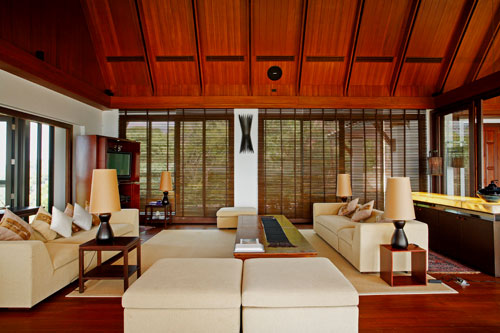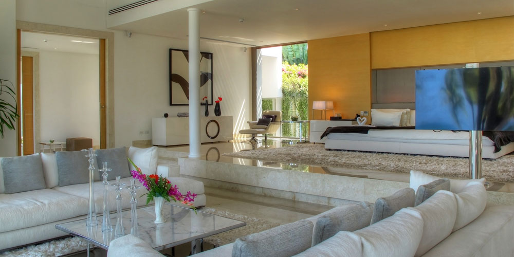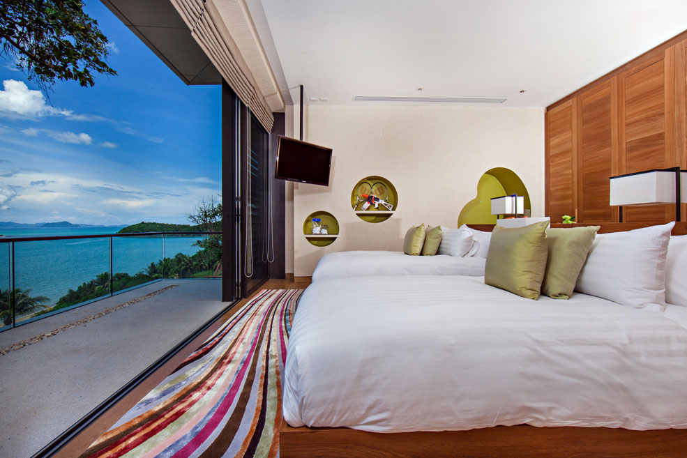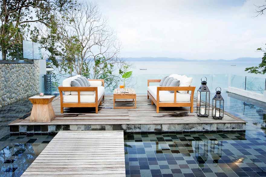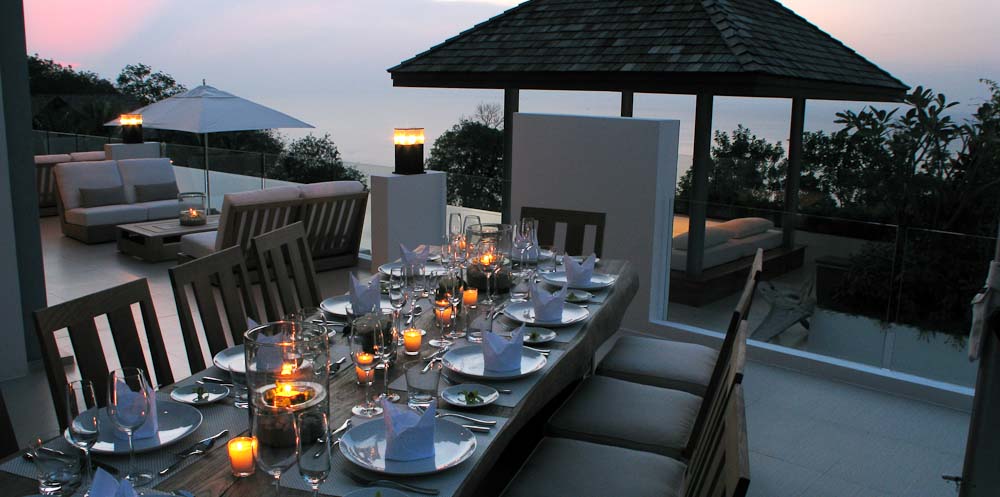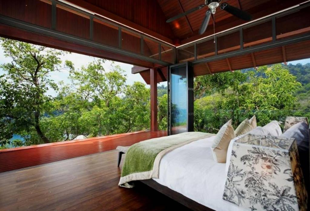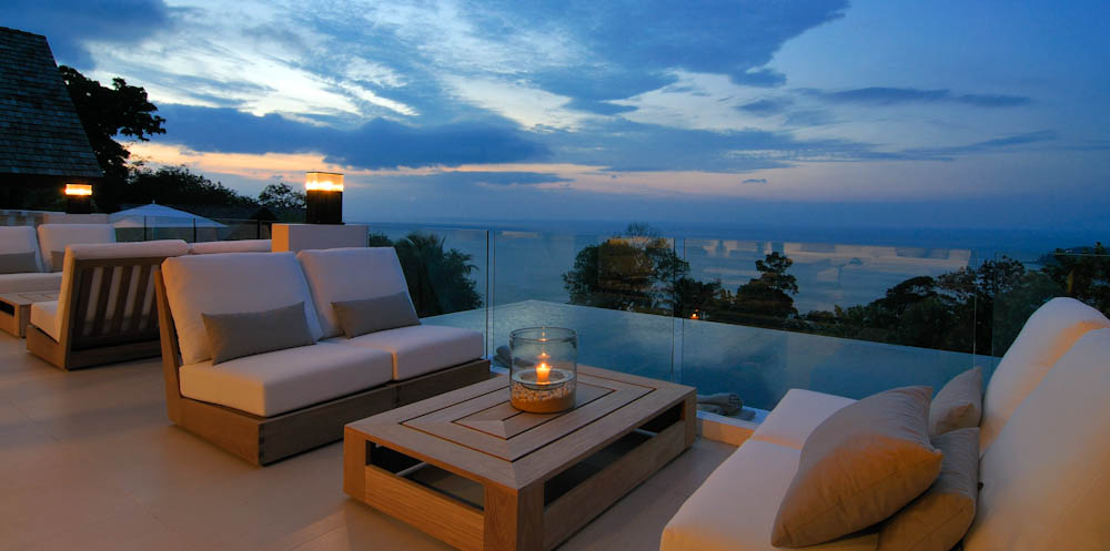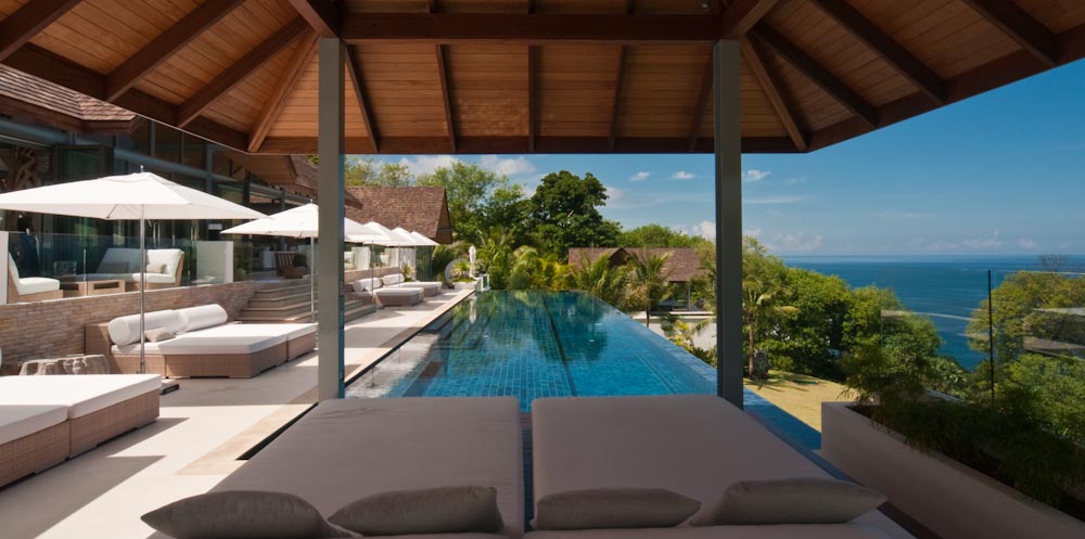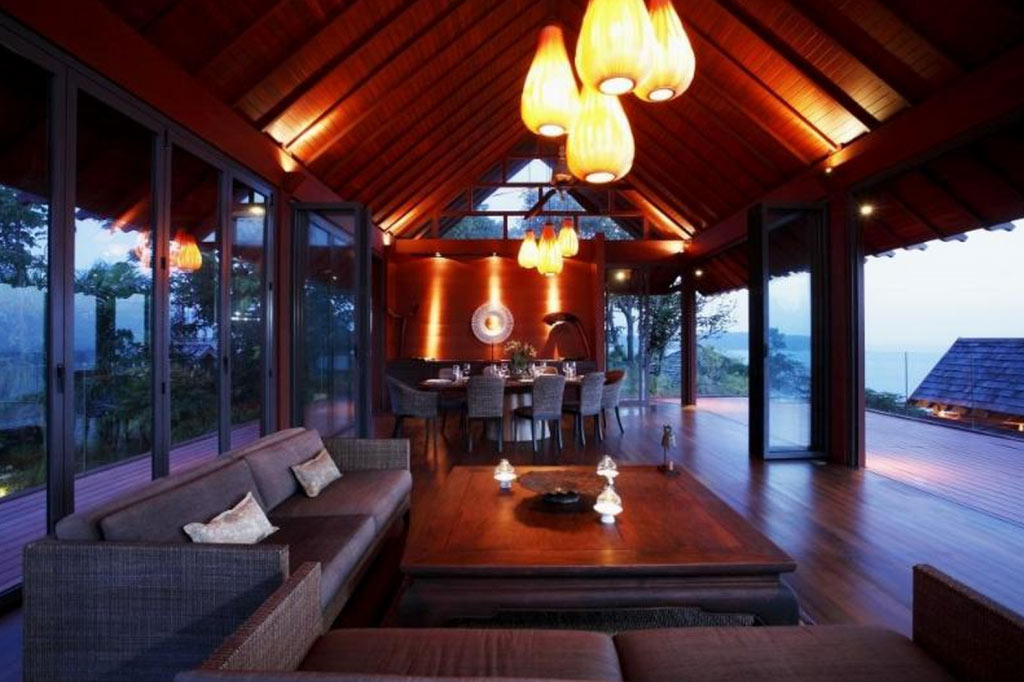 This 5-bedroom villa is perched on a lush green headland facing the crystal-blue water of Andaman sea. Its two salas and two sun decks are perfect for relaxing and lying back while sipping that cocktail and watching the ruby-red rays of sun setting slowly behind the horizon. All bedrooms have their own unique design and amazing features, outdoor views, and spectacular bathrooms.