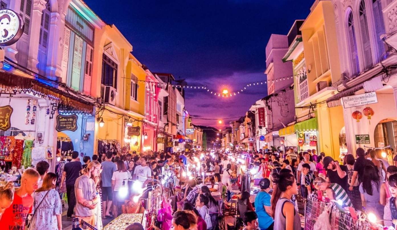 Phuket’s nightlife is not limited to its famous beach clubs and cocktail bars—it also thrives in the bustling energy of its night markets, where culture and community come alive after dark. The Phuket Old Town Weekend Market is one of the island’s most beloved highlights, transforming historic streets into a lively open-air festival. Here, visitors can enjoy live performances that range from traditional Thai music and dance to contemporary acts by local talent, creating a vibrant soundtrack to the evening.