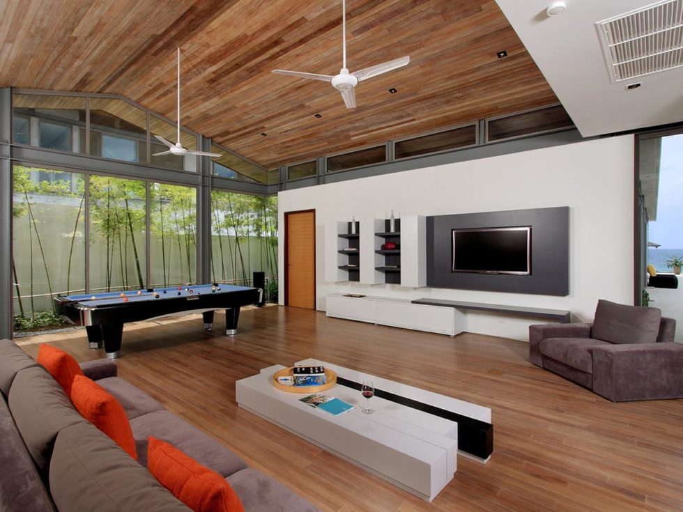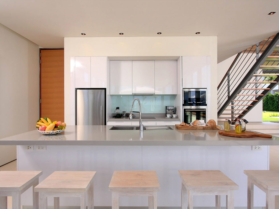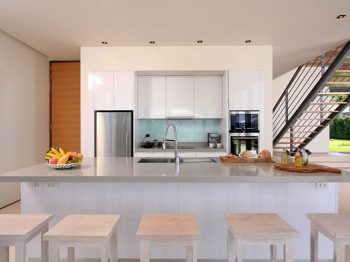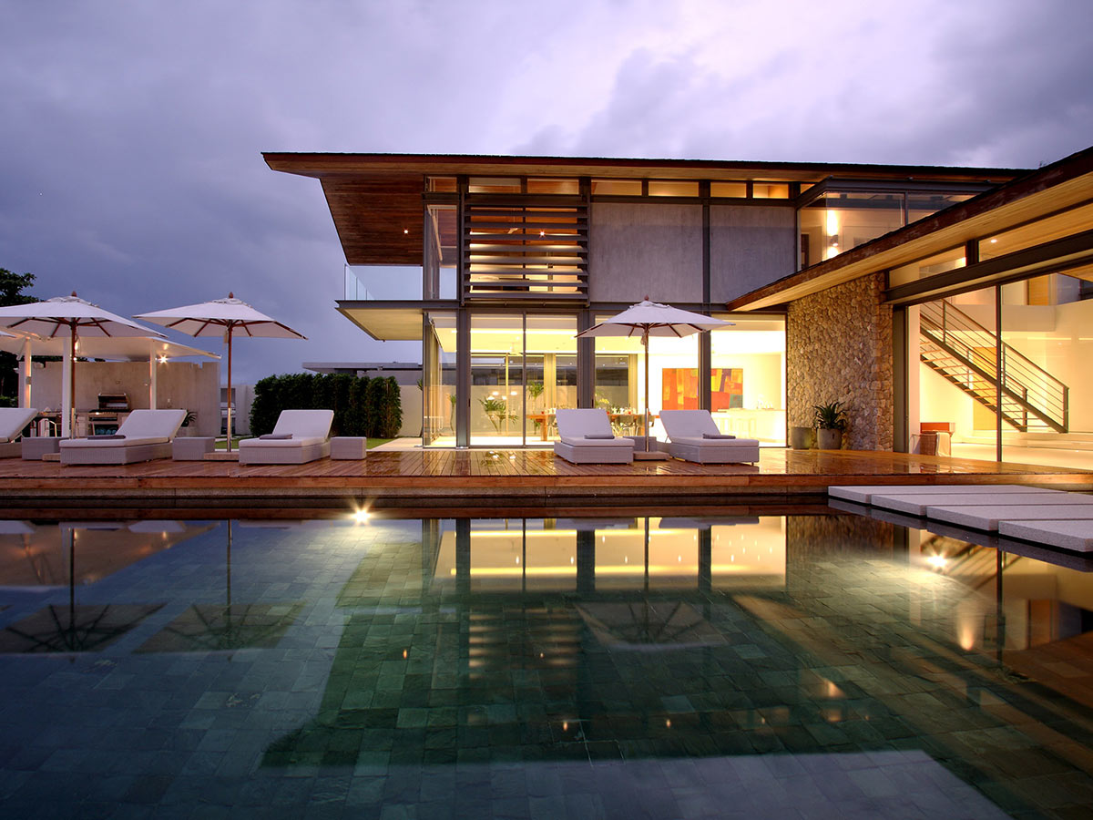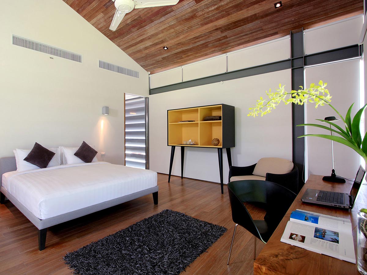 The U-shaped villa’s chic bedroom suites and open-plan living and dining areas wrap around a 25-meter pool, surrounded by ample terracing and lawns for outdoor entertaining. Guests are lavished with attention from a team of full-time staff that includes a villa manager and a skilled Thai chef. A wealth of leisure facilities are available for guest use, including a pool table, surfboards, and football and volleyball equipment.